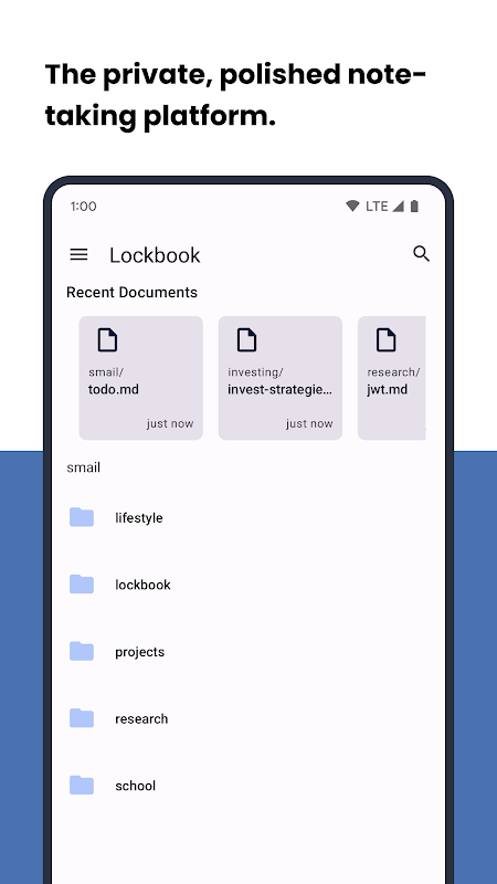 우리는 Lockbook을 매일 사용하기 때문에 일상적인 사용을 위해 Lockbook을 만들었습니다. 우리의 기본 앱은 모든 플랫폼에서 집처럼 느껴지며 빠르고 안정적이며 효율적이고 즐겁게 사용할 수 있도록 추가 노력을 기울였습니다. 우리는 당신이 그들을 시도 기다릴 수 없습니다.