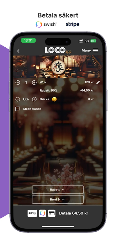 로코, 당신은 주문할 수 있습니다 그리고 당신은 어디서나 빠르고 쉽게 음식과 음료 비용을 지불합니다.