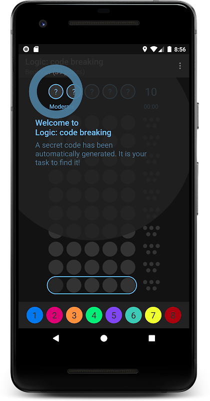 Logic: 코드 해독 멀티플레이어 게임 모드 중 하나에서 친구나 가족에게 도전할 수 있습니다. 동일한 기기에서 플레이하거나 원격 플레이를 위해 메일로 플레이합니다.