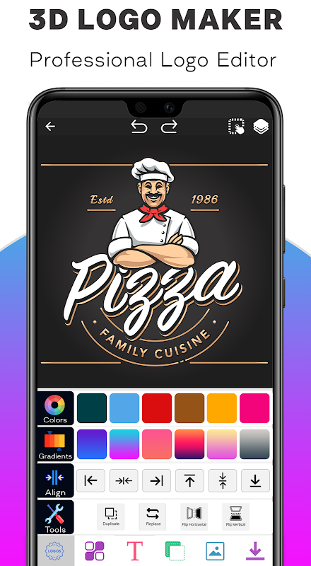 • 사진 필터, 회전, 텍스처, 3D 회전, 크기 조정, 모양별 이미지 자르기, 자동 배경 제거 및 이미지 지우기와 같은 그래픽 디자인을 위한 로고 편집 도구.