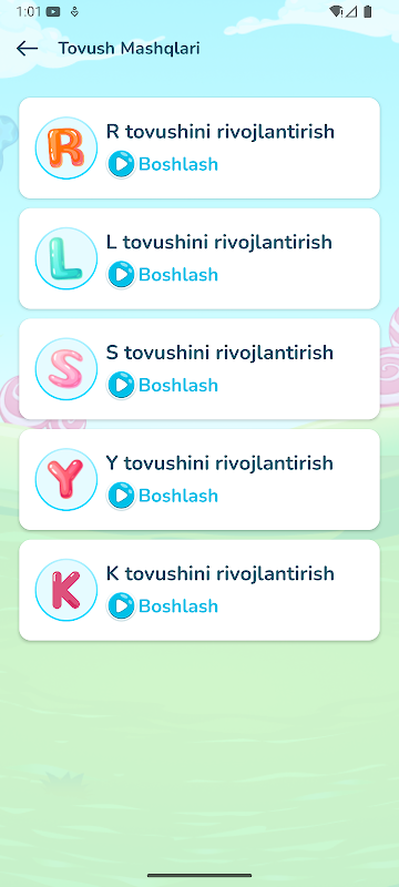 Har bir tovush uchun alohida mashqlar