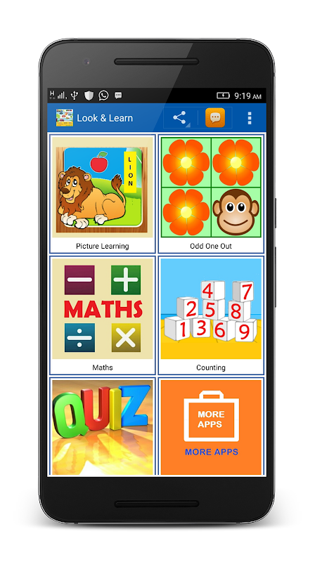 Select the odd one out based on general knowledge and object identification from educational images and picture quiz for children learning. Odd one out feature is an educational game feature for easy learning for kids. Apps for education includes Look and Learn in the top section.