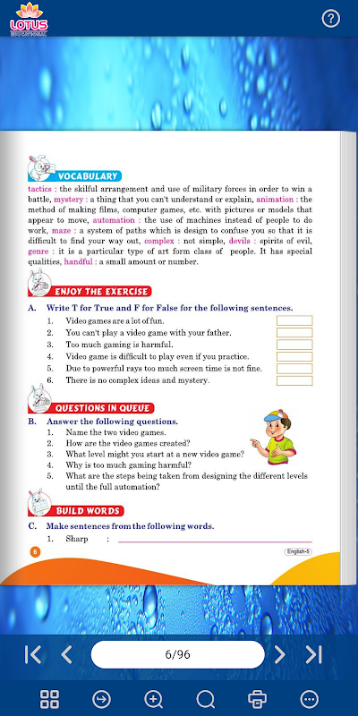 Lotus English Reader-5 e-book을 열고 상호 작용하십시오.