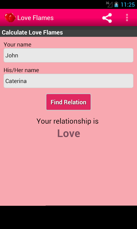 불길은 두 사람 사이의 관계를 계산하는 간단한 재미있는 게임 응용 프로그램입니다 사랑 해요.
