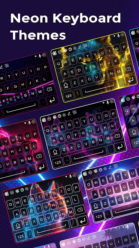 네온 LED 키보드의 생생한 세계로 오신 것을 환영합니다. 타이핑 경험을 밝혀보세요! 세련되고 생생한 LED 키보드 앱인 멋진 키보드로 타이핑을 변형하여 메시지를 생생하게 전달하세요. 다양한 테마와 글꼴을 제공하는 이 멋진 키보드 앱을 사용하면 다채로운 네온 텍스트 효과와 애니메이션 키보드 배경으로 DIY 키보드를 사용자 지정할 수 있습니다. Love Keyboard Neon Theme은 성능에 최적화된 무료 키보드 테마 앱입니다. 소셜 미디어에서 채팅하든 텍스트를 작성하든 RGB 키보드는 부드럽고 반응성이 뛰어난 타이핑 경험을 보장합니다.