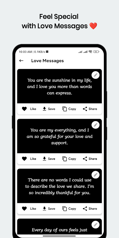 이 앱은 사랑하는 사람에게 사랑한다고 말할 수 있는 창의적인 방법을 찾는 데 도움이 될 것입니다. 사랑은 가능한 가장 창의적이고 진심 어린 방식으로 표현될 가치가 있는 아름다운 감정입니다. 남자 친구, 여자 친구, 아내, 남편 또는 원하는 누구에게나 낭만적인 편지 메시지와 사랑의 시로 사랑을 보여주세요.