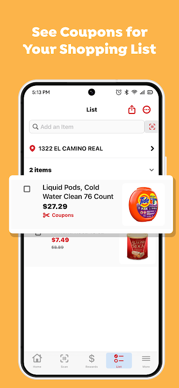 • 항목을 수동으로 추가하거나, 앱을 탐색하거나, 제품을 검색하여 개인화된 쇼핑 목록을 구축합니다. 할인을 극대화할 수 있는 쿠폰이 있는 품목을 확인하세요.