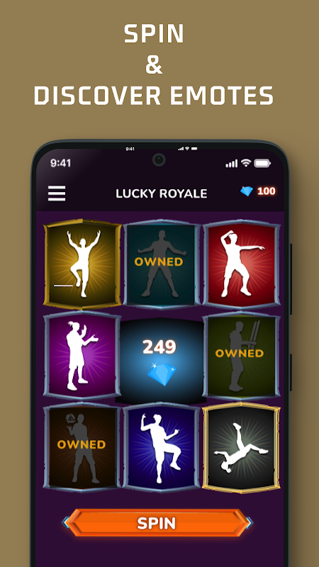 사용법은 매우 간단합니다. 스핀을 통해 이모티콘과 춤을 잠금 해제해야 합니다. 각 회전은 다이아몬드의 양을 소모합니다. 회전할 때마다 기록에 저장될 이모티콘이 잠금 해제됩니다.