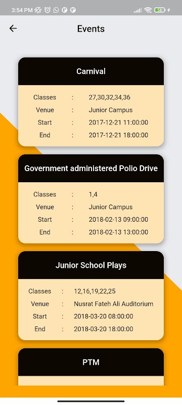 the parent can see all his attendance, see new notices , exam results , homework , Time table , Fee challans , events etc.