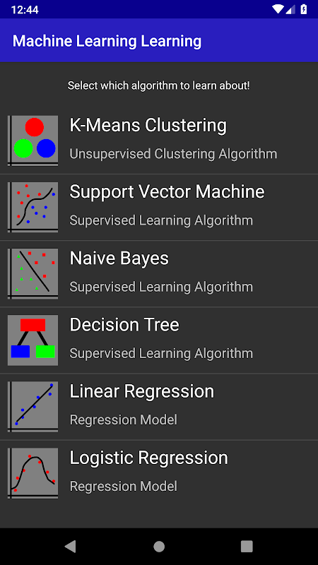 Machine Learning Learning teaches you about different machine learning algorithms.