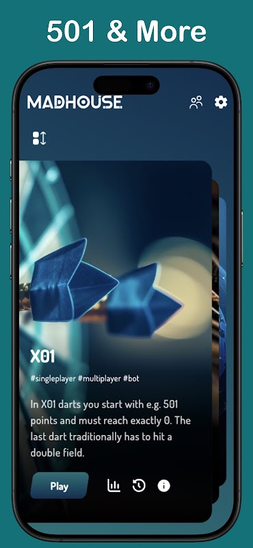Welcome to Madhouse, your new favorite darts scorer! Track X01 (501, 301), Cricket, and more with a beautiful, easy-to-use interface. Perfect for casual games at home or competitive play. Start scoring and enjoy every dart!