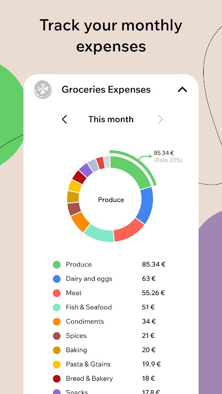 예산 추적: 월별 및 연간 통계를 통해 식비 지출을 모니터링하세요. 최신 정보를 받아 더욱 현명한 쇼핑 결정을 내리세요.