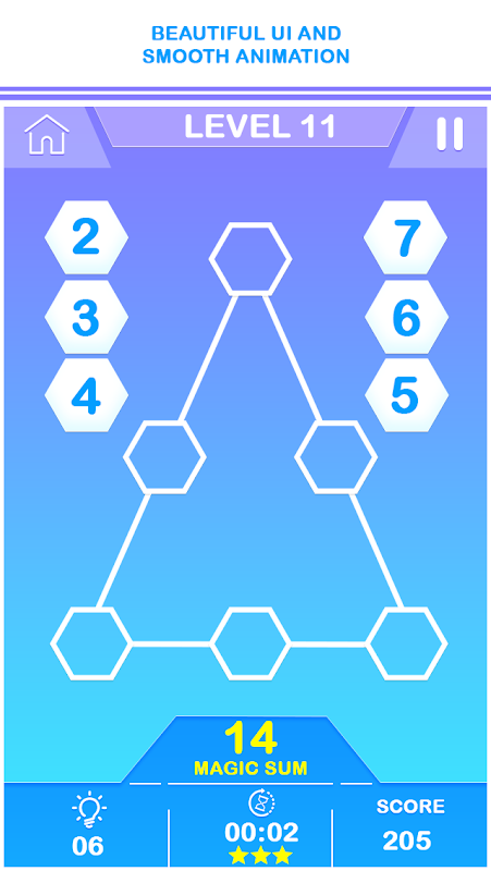 마법의 삼각형 퍼즐 게임 은 학교에서 아이들의 두뇌 기능과 오락을 향상시키는 데 사용되었습니다. 이 퍼즐은 어린이뿐만 아니라 정신적으로 건강을 유지할 수 있습니다. 그것은 당신의 논리, 추론 및 두뇌 능력뿐만 아니라 수학 능력을 향상시킬 것입니다. 수학 게임은 뇌의 힘을 증가시키기 때문에 항상 우리 삶에서 중요한 역할을합니다. 수학 게임에 매일 참여하는 것은 분명히 훌륭한 두뇌 능력을 가져옵니다. 그러므로 당신에게 수학 게임 Triangle 매직 트라이앵글을 제시하십시오.