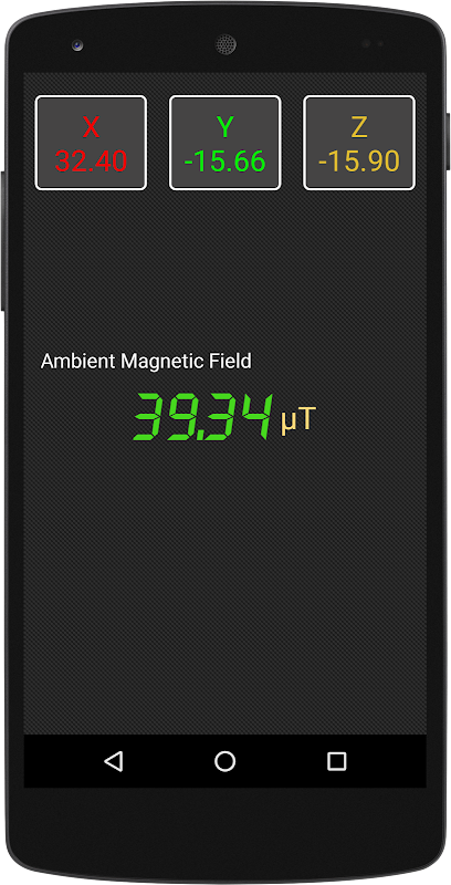 Note: Mobile phone sensor can only detect DC type magnetic field, that is the earth magnetic field. When measuring power line magnetic field ( for example, 50 / 60 Hz AC) , the result is not accurate, or even no reading at all. This app is for daily uses only, please use professional instrument for accurate measurement.