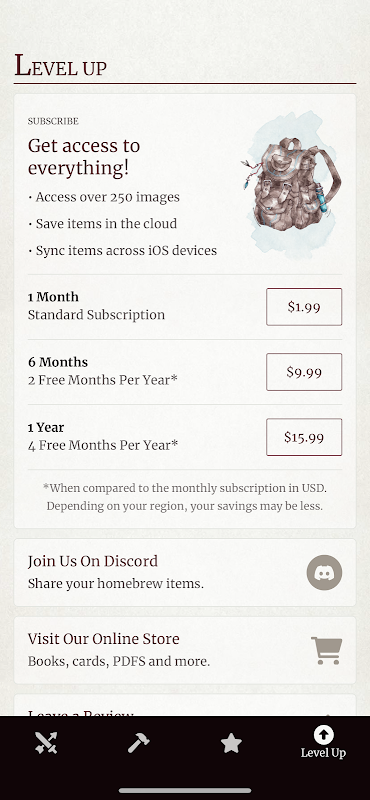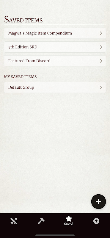 응용 프로그램은 5E 재료와 호환 심지어 오픈 게임 라이센스를 통해 D & D 시스템 참조 문서 (SRD)에서 바로 당신의 마음에 드는 마법 물품의 일부를 가져옵니다.