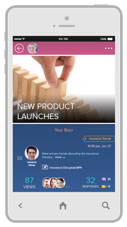 Users can consume bite-sized content pushed to them as well as participate in live audio / video mentoring and coaching sessions.