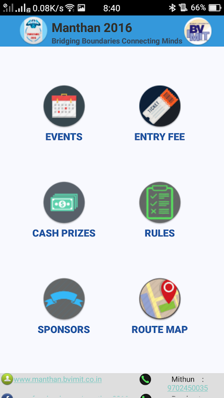 Provides all information regarding the event which will help you reach the event co-ordinators, route map to the event venue, sponsors of the festival,event list, entry fee information for the all the different cultural, IT, non IT, indoor, outdoor games and events, cash prize information for the same, rules for all the events which needs to be followed