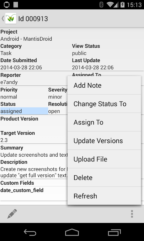 MantisBT 안드로이드 클라이언트 - 사마귀 버그 트래커 (오픈 소스 버그 추적 시스템).
