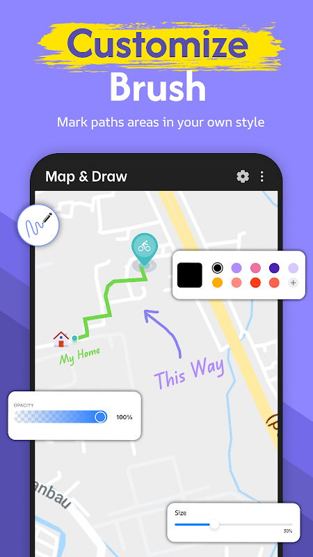 지도에 그림을 그리고, 경로를 계획하고, 경계를 표시하고, 나만의 지도를 만들어 보세요. 이 모든 것이 사용하기 쉬운 하나의 앱으로 가능합니다. Map & Draw는 여러분의 기기를 학교, 여행, 부동산 등 다양한 용도로 활용할 수 있는 강력한 지도 스케치 도구로 만들어 줍니다.