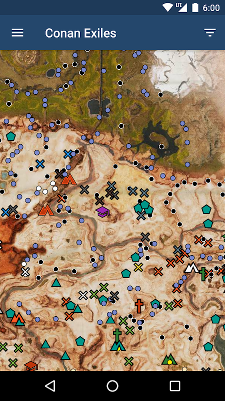 코난 망명자의 거대한 오픈 월드에서 분실 염려가 없습니다! GINFO는 사막과 얼어 붙은 북한을 포함한 코난 망명자의 고해상도지도를 제공합니다.