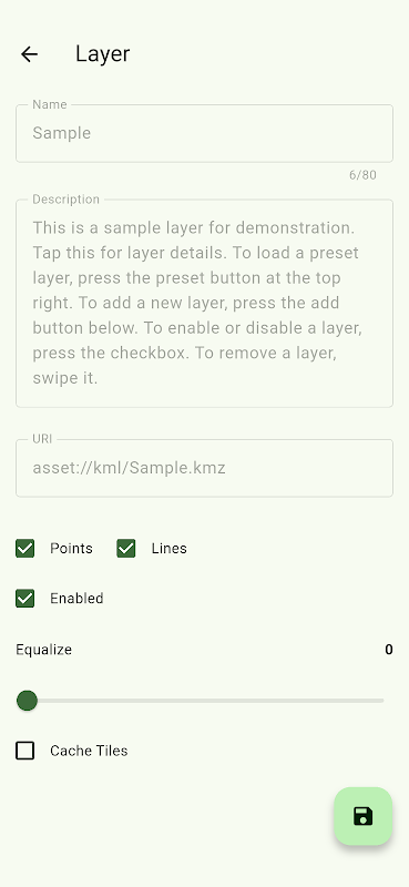 Wear OS 사용자를 위해 간소화된 버전도 제공됩니다. Wear OS 버전은 단독으로 실행하여 위치, 확대/축소 및 패닝 기능이 포함된 기본 지도를 표시할 수 있습니다. Wear OS에서 앱의 모든 기능을 사용하려면 휴대폰 버전도 설치해야 합니다. 시계와 휴대폰 모두에 Mappoff를 설치하고 시계가 휴대폰에 연결되어 있는지 확인하세요. 휴대폰에 경유지, 경로 및 트랙을 불러온 후 시계를 탭하면 해당 위치에 표시됩니다. Wear OS 앱은 단일 패닝 뷰를 사용하며 Wear OS 타일을 사용하여 작업을 표시하지 않습니다. 왼쪽에서 오른쪽으로 이동하는 제스처 대신, 왼쪽 상단의 X를 눌러 앱을 종료하세요.