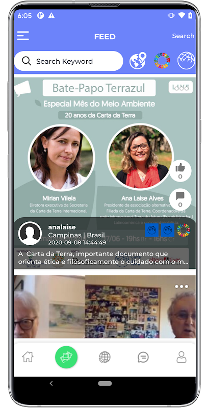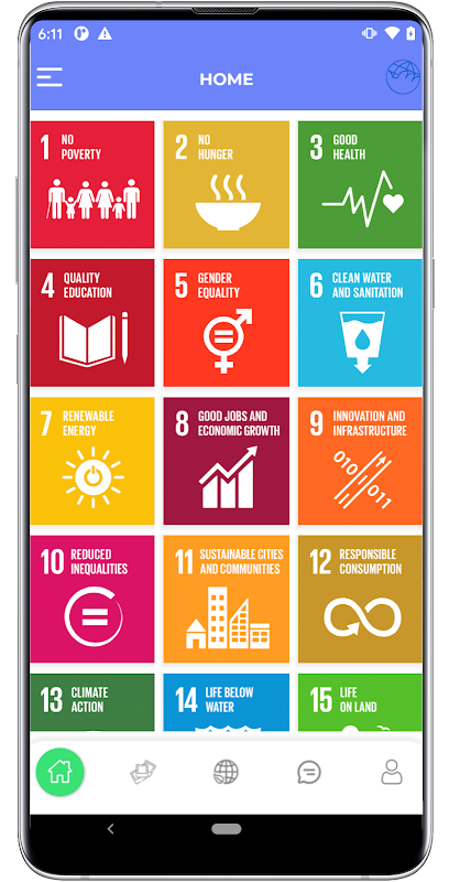 이미 주위에 SDGs를 달성 또는 모든 사진 및 동영상을보고 앱 피드를 검색하기 위해 수행 된 내용을 볼 수있는 세계지도를 엽니 다.