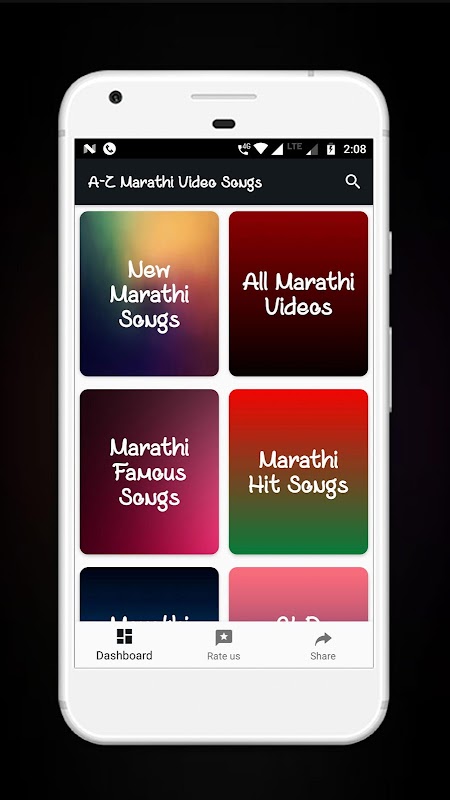 Marathi Gani, Lavani Video Songs를 언제 어디서나 온라인으로 들어보세요. 이 응용 프로그램은 최고의 컨트리 뮤직 비디오 플레이어 중 하나입니다. 아래 주어진 모든 범주에서 좋아하는 마라 티 동영상을 찾아보십시오.