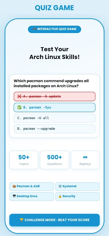 Arch Linux 배우기: 명령어, 퀴즈 게임, 다국어 지원 및 전문가 수준의 Linux 기술 – 무료