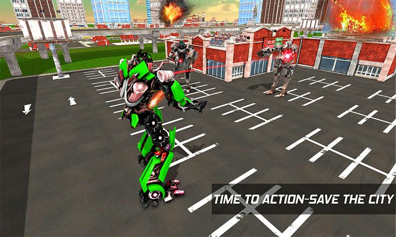 Use Joy stick to control the robot and find the enemy by using the map and kill within given time. Use buttons to fast run, jump, flip, sneak, block hit and set the target. Use screen swipe button to rotate the payer. You can also change weapons during fighting.