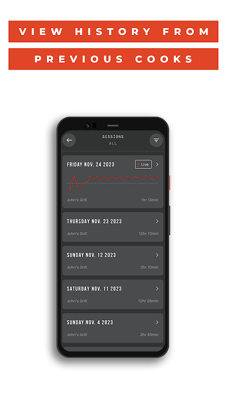 원활한 그릴 경험을 위해 개선된 모바일 앱을 사용하여 Masterbuild Gravity Series®, AutoIgnite™ 시리즈 및 WiFi 흡연자를 제어하세요. 현대 그릴 마스터를 위해 제작된 이 제품은 손바닥의 힘으로 요리사를 쉽게 제어할 수 있습니다. 온도와 시간을 설정 및 조정하고, 고기 탐침을 모니터링하고, 요리 이력을 확인하고, 수백 가지 레시피를 발견하고, 야외 그릴 요리를 한 단계 더 발전시키세요.