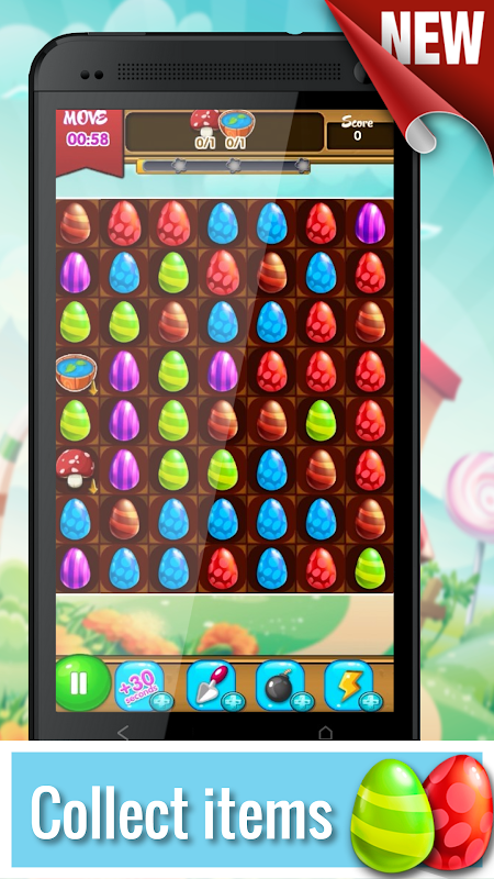 게임의 본질은 3 개 또는 그 이상의 연속적인 부활절 달걀에 연결되는 것입니다. 당신의 임무는 한 줄에 같은 색의 물체를 선택하는 것이고, 줄이 많을수록 좋습니다! 독특한 작업으로 100 가지 이상의 새로운 레벨을 얻고, 플레이어 포인트에 대한 힌트를 구입하고 다양한 보너스를 수집하십시오.
