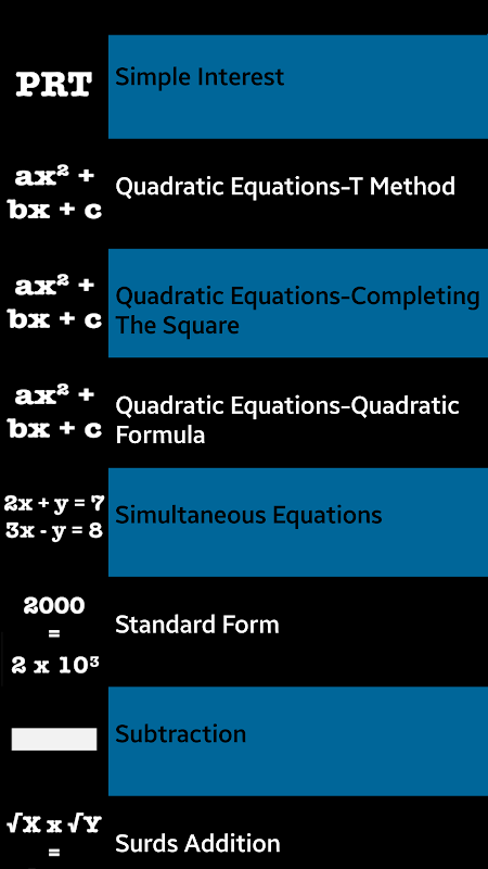 학생들이 자신의 손끝에서 수학의 다양한 주제에 도움을하는 수학 도우미를 가능하게한다. 도움말 섹션 단계 솔루션에 의해 단계와 방정식 및 예제와 함께 제공