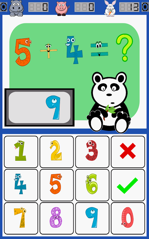 교실 모드에서 복잡성 수준과 함께 더하기, 빼기, 곱하기 및 나누기를 선택하면 Math Panda는 장난스럽고 시간이없는 환경에서 수학 문제를 해결합니다. 하마는 정답을 계산하고, 돼지는 오답을 계산하며, 토끼는 경과 시간을 표시합니다. 도전 모드에서 2 분 안에 가능한 많은 문제를 해결하여 집중 의 새로운 라운드를 잠금 해제하십시오. 메모리 또는 쌍이라고도하는 Math Panda의 농도 버전은 수학 문제를 솔루션과 일치시킵니다. 2와 2를 4와 6x7, 42와 맞 춥니 다. Math Panda Concentration은 연습을 매우 재미있게 만들어줍니다! 마지막으로, 비교기 의 객관식 게임을 즐기거나 누가 가장 높은 점수를 받는지 알아 보도록 친구들에게 도전하십시오!