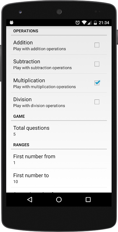 - 게임의 조작을 선택합니다(예: 곱하기만).