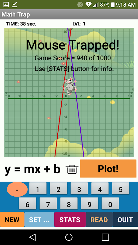 After you play this game for a while you’ll develop a pretty good intuitive understanding of the relationship between a linear equation and its plot on a Cartesian graph.