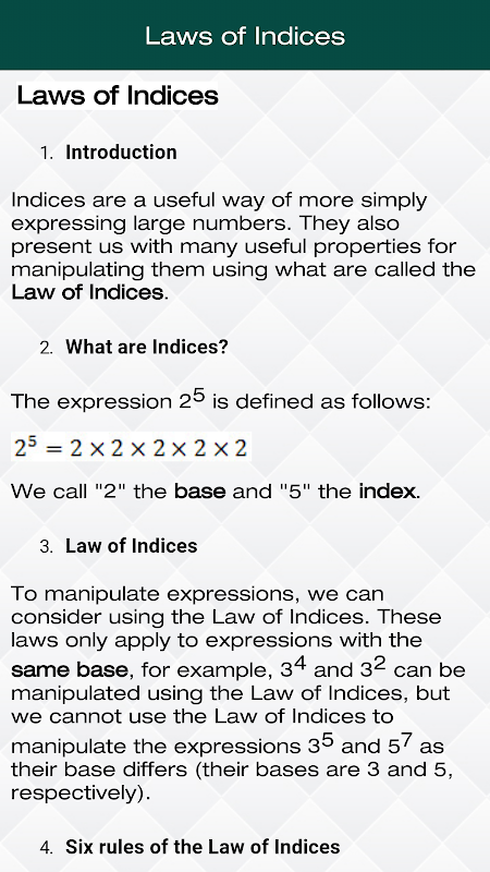 In Math Formulas, we include some of maths formula like Law of Indices, Surds, Complex Numbers, Arithmetical and Geometrical Progression, Theory of Quadratic Equation , Binomial Theorem, Logarithm and so on.