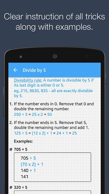 이 응용 프로그램은 당신이 열심히 문제를 해결하는 데 도움이 서로 다른 쉬운 수학 마술로 포장되어 있습니다. 이 트릭이 아니라 "학습과 트릭을 연습"섹션에서 구성됩니다. 초보자 인 경우 당신은 "연습 기초"섹션에서 몇 가지 연습 시험을하는 것이 좋습니다. 당신이 확신하면 충분히 당신은 "배우고 연습 트릭 '과 병행이 섹션에서 추가 시험을 할 수 있습니다.