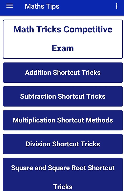 Math Tricks & Shortcuts for Competitive Exam app is a preparatory app on mathematics for various competitive examinations, like, SSC, UPSC, CPO, LIC, GIC and UTI among others.
