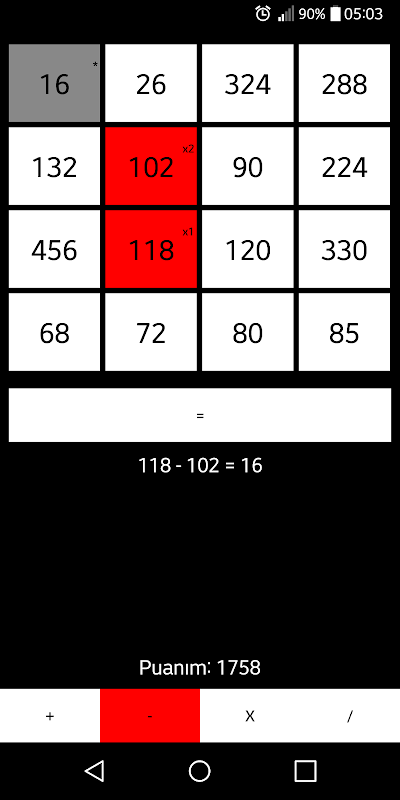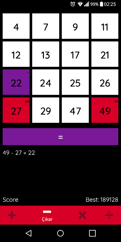 A game to make calculation of random given numbers with mathematical operation,