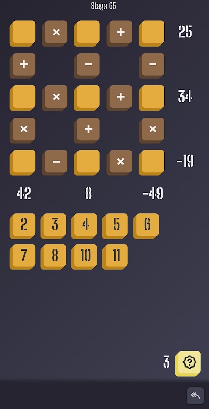 이 게임을 통해 곱셈, 뺄셈 및 덧셈을 계산하기위한 기본 수학 기술을 훈련 할 수 있습니다. 모든 게임 필드는 전적으로 무작위로 생성됩니다. 매우 드물게 동일한 수준을 얻을 수 있지만 그렇게 자주 발생해서는 안됩니다.