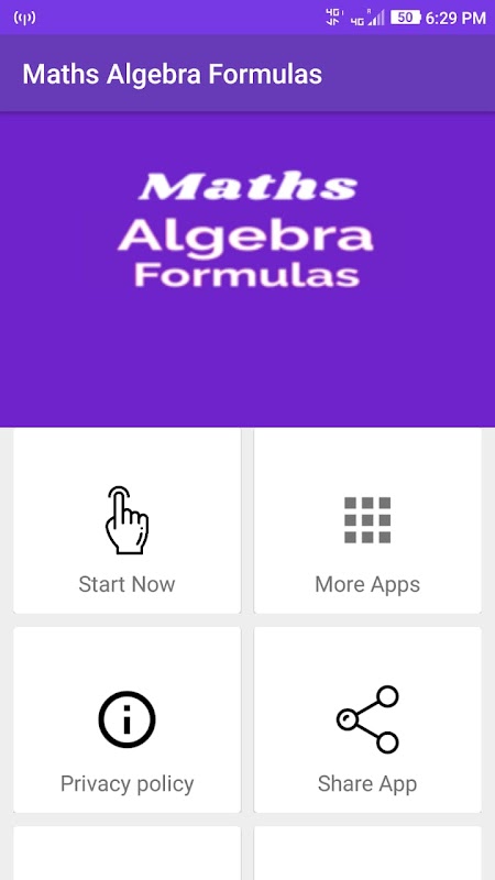 ✦ This is an app designed for Students for quick access to Algebra Formulas.