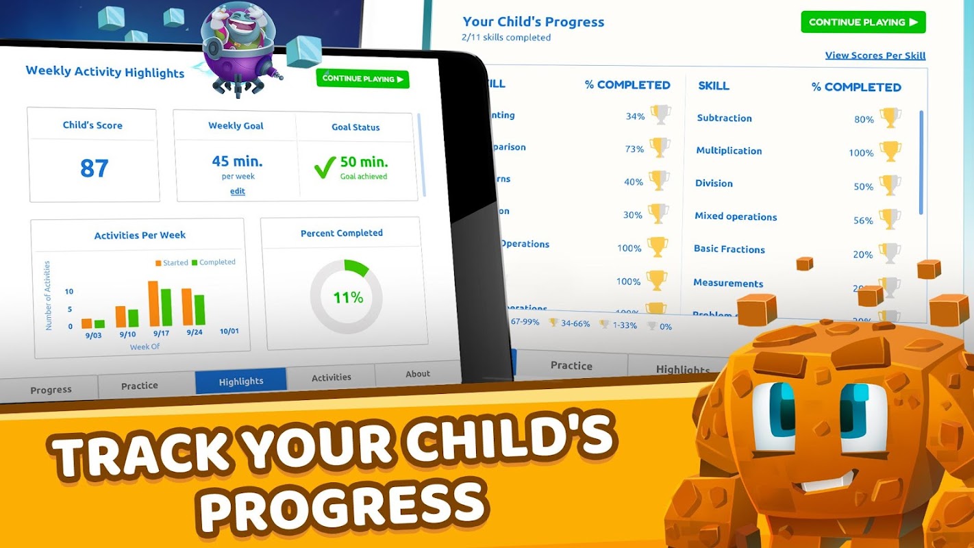 The “Skip” mechanism has now been improved to ensure that your child never feels stuck and can always move forward in the game while learning mathematics and having fun.