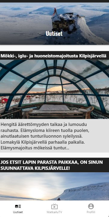 "경험에서 경험으로" Kotimaanmatkailu TV-Digilehti-뉴스레터 페이지.