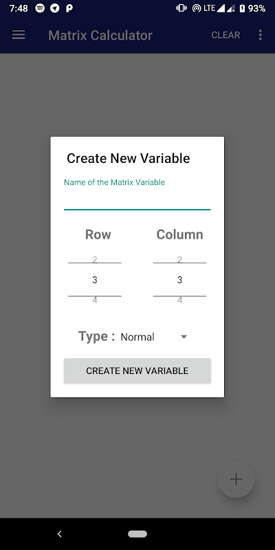 "Matrix Made Easy"라는 슬로건을 가진 오픈 소스 프로젝트, 수 많은 사용자 정의 및 지원 (수량 999999까지) 및 정밀 (최대 소수점 6 자리까지)을 지원하는 단순하고 눈에 띄는 사용자 인터페이스. 계산기는 모든 변수를 1x1에서 9x9 행렬로 만들 수 있습니다.