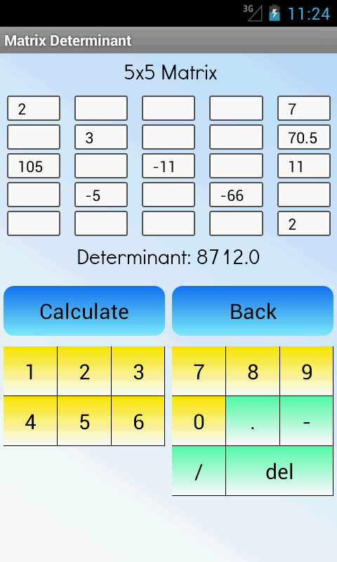 이 무료 응용 프로그램은 행렬의 행렬식을 계산 할 수있는 수학 계산기입니다. 다음 행렬의 결정을 사용할 수 있습니다 :