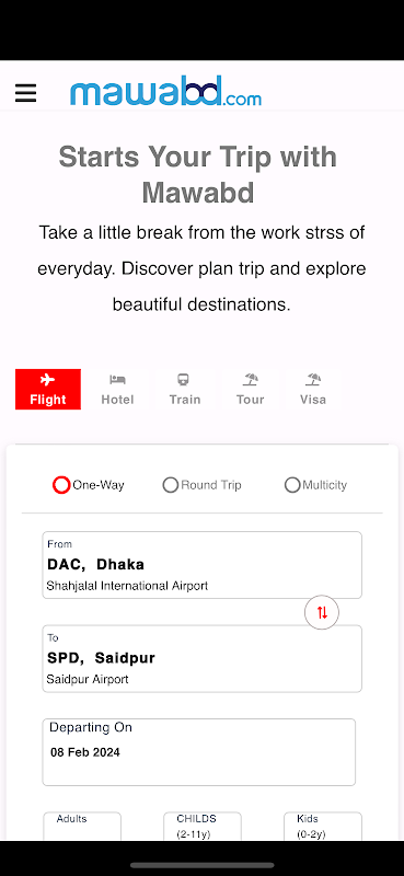 MawaBD Travels의 기업 MawaBD입니다. 방글라데시의 선구적인 온라인 여행사입니다. 전 세계 최저가 항공권, 호텔 예약, 패키지 투어를 최저가로 제공해 드립니다. GDS, LCC, Soto 항공권을 이용하실 수 있습니다. 우리는 귀하에게 필요한 모든 서비스와 관련된 여행을 제공하고 있습니다. , 현재 우리 포털에는 인도 기차표가 포함되어 있습니다