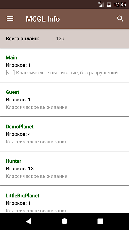 Приложение представляет из себя справочную систему для серверов MCGL.