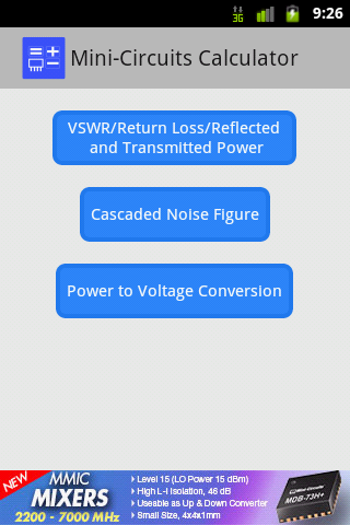 MCL 전자 계산기는 통상 다양한 용도 RF 및 마이크로파 시스템 설계자 (21)에 필요한 계산을 수행한다. 예를 들어, 신속 VSWR 또는 송신 전력에 대한 반사 손실의 효과를 계산; 이득과 최대 5 증폭기 단에 대한 잡음 지수를 종속; 및 전원 전압 변환. 그것은 당신이 실험실에서 또는 현장에서 작업 여부가 문제를 해결하고 시간을 절약 할 수있는 완벽한 도구입니다.