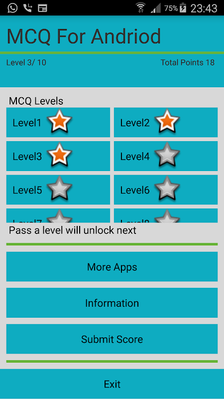 이 응용 프로그램은 학생과 전문가가 안드로이드 응용 프로그램 개발 및 프로그래밍에 대한 기본 개념을 새로 고치는 데 도움이되며 응용 프로그램에는 안드로이드 프로그래밍에 대한 MCQ 샘플이 10 레벨로 나뉘어져 있습니다. 각 레벨은 무작위로 선택된 10 개의 질문을 제공하며 각각 4 개의 답변이 있습니다.