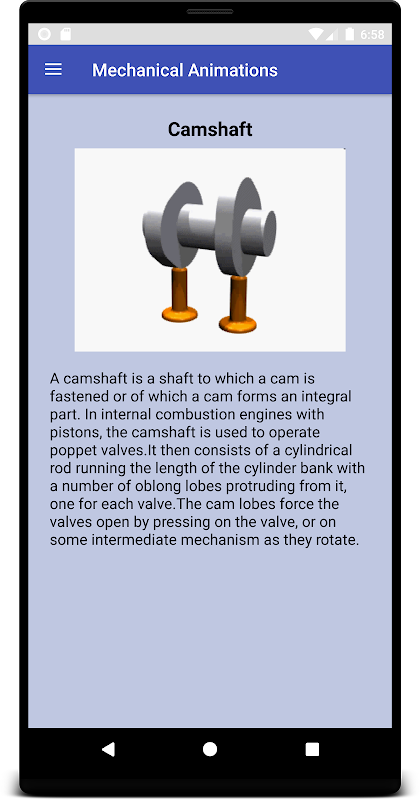 교육은 중요하지만 적절한 방법을 사용하여 교육을받는 것이 더 중요합니다. 교육 및 학습 목적으로 기계 애니메이션을 설명하는 응용 프로그램을 시작했습니다. 이 응용 프로그램은 다음과 같은 주제를보다 시각적으로 이해하는 데 도움이됩니다.